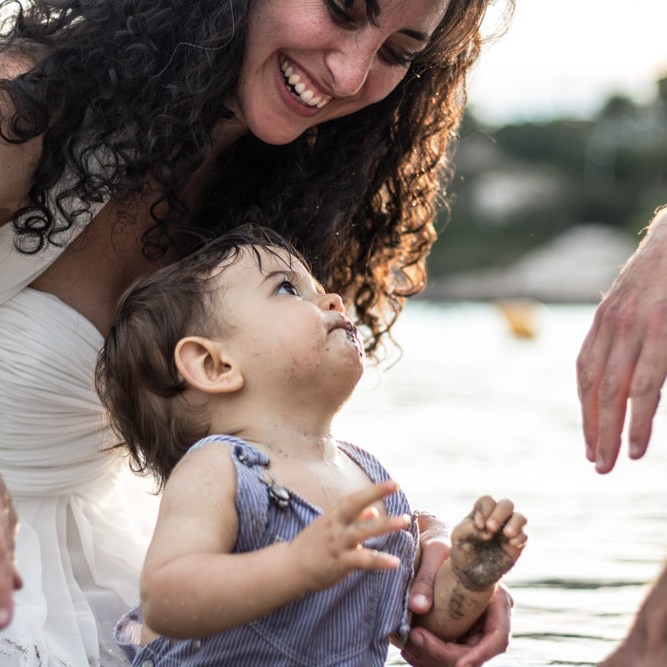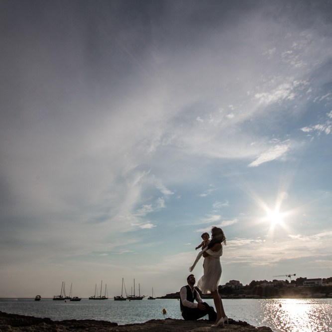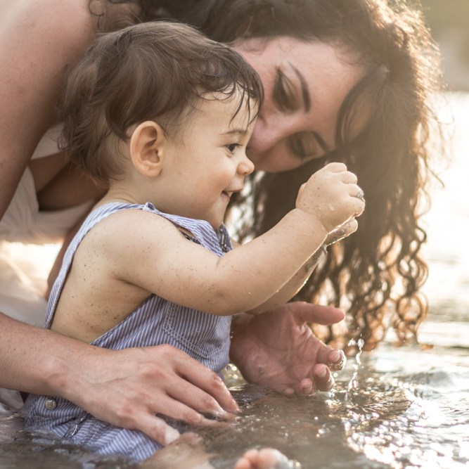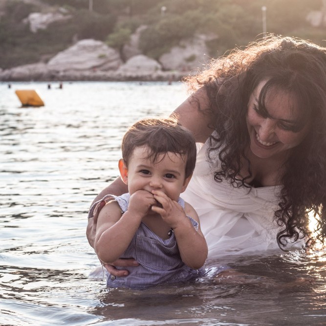 Dans le sud de la France, (les sudistes près de Marseille vous diront que le nord commence à Avignon…) nous finissons beaucoup de séances photos au bord de l’eau ou dans l’eau. L’eau est bonne à cette époque de l’année, alors pourquoi s’en priver? Nous avons ainsi des photos encore différentes avec une émotion et une joie palpables. Les couleurs d’une journée où le soleil se couche ou s’est déjà couché sont tellement douces et agréables.