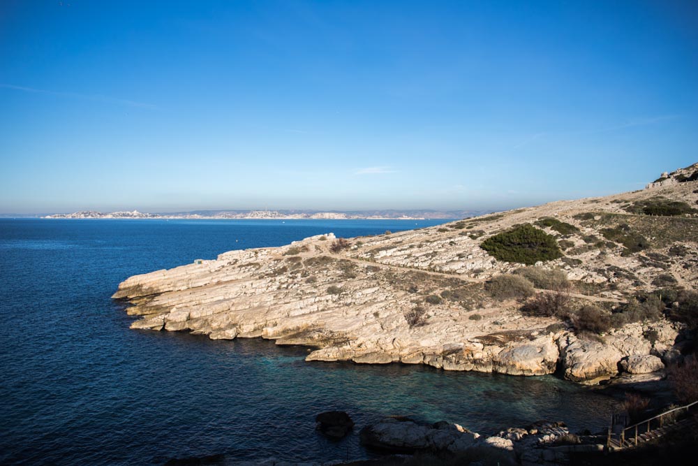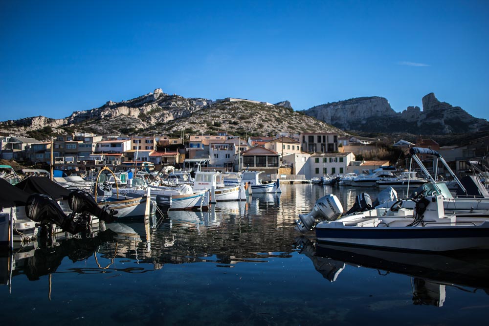 On continue vers la calanque de Callelongue. Petit port situé dans une impasse et départ du côté sauvage des calanques. Départ de multiples balades et randonnées, ainsi que de plongées. En haut, une vue sur une partie de Marseille. Plus bas, le côté paisible d’un village de pêcheurs. Beaucoup de randonneurs viennent ici. D’autres s’installent face à la mer pour profiter du soleil d’hiver avant la cohue des touristes de l’été.