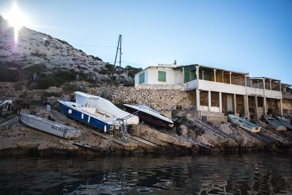 Après avoir traversé le quartier de la Madrague, nous arrivons sur le quartier des Goudes. Véritable petit village de pêcheur, on y retrouve un joli petit port avec une vue sur les roches. Tout semble si calme et reculé de toute l’agitation du coeur de Marseille. Une impression paisible en déambulant dans les petites rues. Peu de bruit. Des pêcheurs sur leur bateau pour l’entretien. D’autres qui discutent.