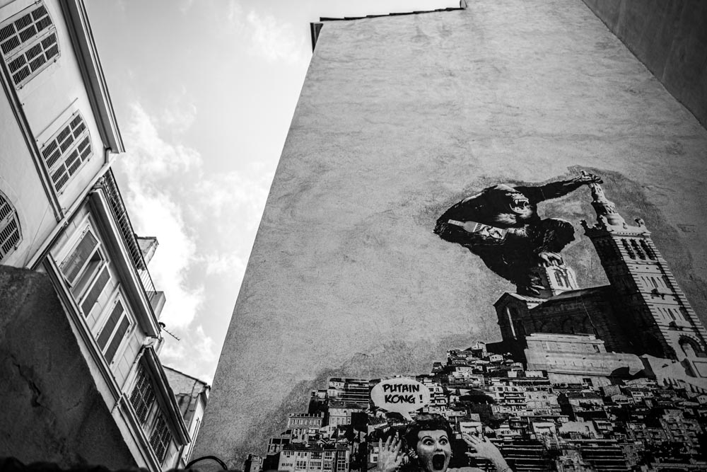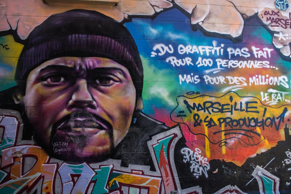 Lorsqu’on est dans des rues bétonnées de part et d’autre, cela semble triste. Il ne manquerait plus que la pluie, un virus, et nous voilà au milieu de rues très tristes. Certains quartiers de la ville de Marseille sont habitués aux graffitis. Différents artistes viennent mettre un peu de couleurs là où il n’y en a pas. On retrouve ainsi de grandes fresques sur les murs mais aussi sur les devantures des magasins, restaurants.