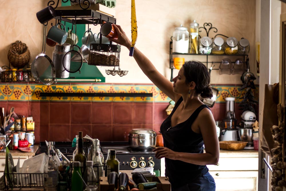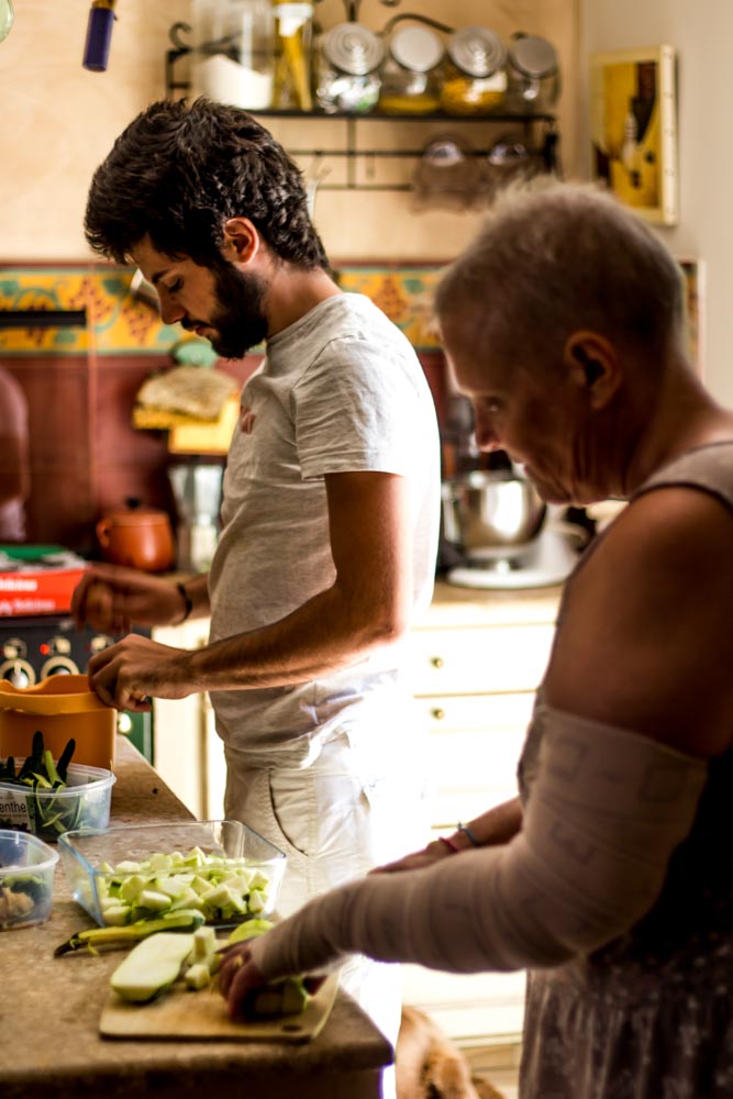 12h. Papa et maman s’activent pour préparer le repas. R. a passé quelques minutes dehors en jouant avec toutes sortes de choses comme des bouts de bois, de pierres, de briques, pour bricoler comme papa.