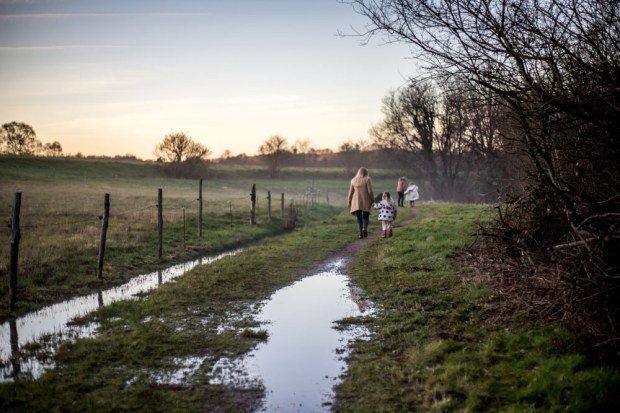 17h30. Papa prend un peu le relais pendant que maman travaille un peu. Petite balade avec Gustave et les enfants autour de la maison.