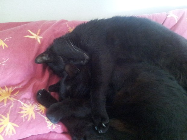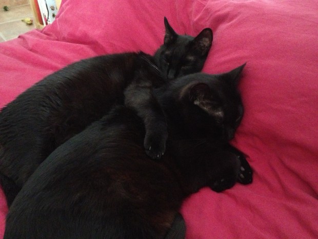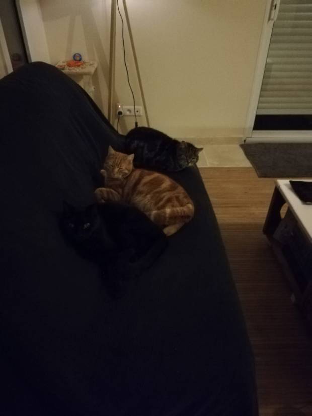 Notre journée alterne donc entre sieste sur le canapé, sieste sur le lit, sieste au soleil. De temps en temps un petit repas, puis éventuellement un vomi sur un canapé si la journée est un peu longue. Voire un marquage de territoire si on estime que l’on nous laisse trop de temps seul. On ira même jusqu’à bouder à votre retour. Sauf si vous nous servez un bon repas, on reviendra ensuite en ronronnant. Vous aviez donc raison en imaginant notre journée…